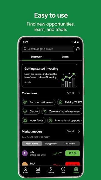Fidelity’s secure and easy-to-use award-winning app gives you access to a broad choice of investments, expert insights, and investing tools—helping you make smart decisions with your money.Secure: Fidelity is committed to your security with 2-factor authentication, voice biometrics, security text alerts, and money transfer lockdowns.