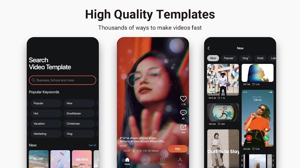 Just a few taps to cut videos, merge videos, add effects, add images, add music, and add text to make amazing videos fast. KineMaster makes it easier than ever to create vlogs, slideshows, video collages and green screen videos. KineMaster’s Asset Store gives video editors a huge library of royalty-free music, sound effects, stickers and video templates, making success possible on YouTube, Instagram, Facebook and TikTok.