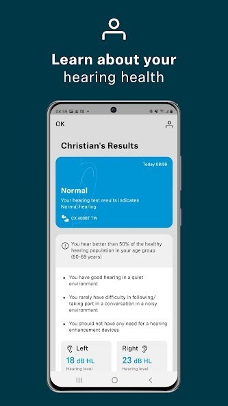 - Assessment of your hearing in a non-stressful way - it takes less than 5 minutes
