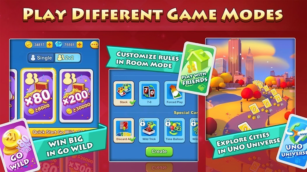 New to UNO!™ or wanting to play your favorite card game? Tap Quick Play and start up a new game with classic UNO!™ rules. Get ready for new monthly rewards and events!