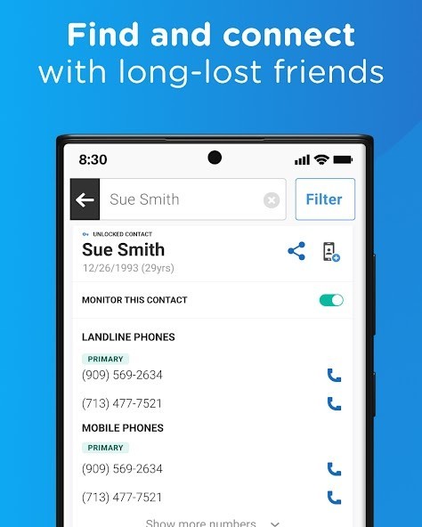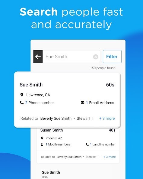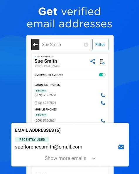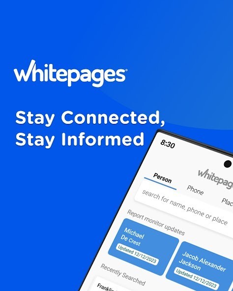 Get accurate and up-to-date contact information or learn more about a person's background in seconds through Whitepages Find People app, the most trusted online directory & reverse lookup service! With WhitePages Find People, you can quickly find information about people you may have lost contact with, verify the identity of a business contact, or look up an unknown caller.