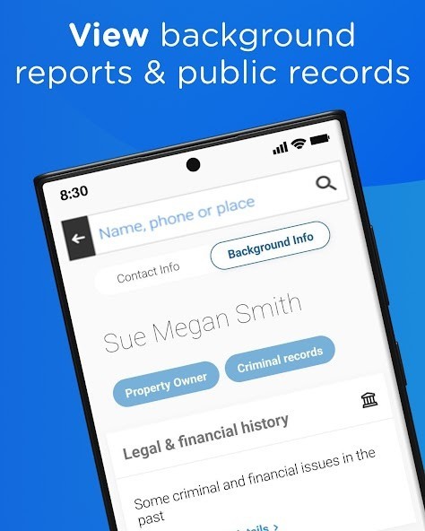 Our app provides users with quick and easy access to contact information and background details, including a person's name, address, phone number, email address, caller ID, property & criminal records, and other hard-to-find information.Download the free Whitepages Find People app to access: